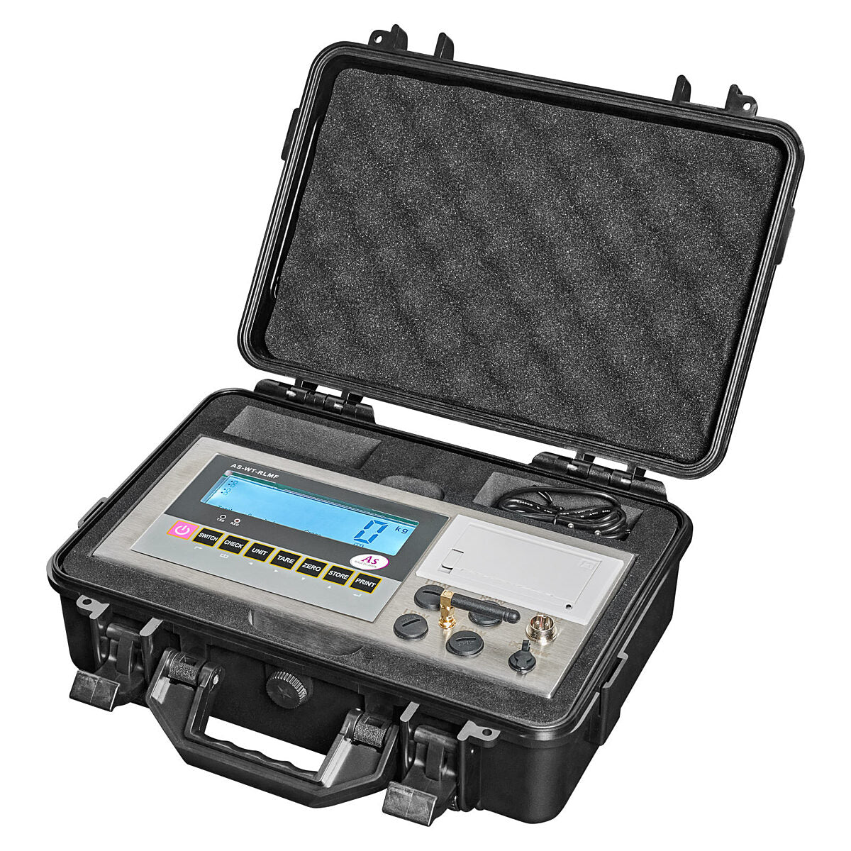 De mobiele weegindicator WT-RLM maakt het meten van wiellasten, aslasten en het bruto voertuiggewicht mogelijk. Hij kan tot vier platforms aansluiten, berekent de procentuele lastverdeling , ondersteunt deel- en asweging , biedt een tarrafunctie voor nettogewichten en documenteert alle gegevens via de geïntegreerde thermische printer . Uitgerust met een draagtas, achtergrondverlichting, toetsenbord, gegevensopslag, RS-232-interface en oplaadbare batterij – optioneel met programmeerbare headers voor afdrukken (WT-RLMF).