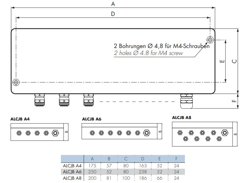 ALCJB A4 / A6 / A8 – Anschlusskasten für 4, 6 oder 8 analoge Sensoren